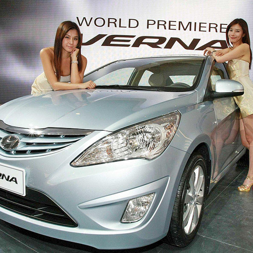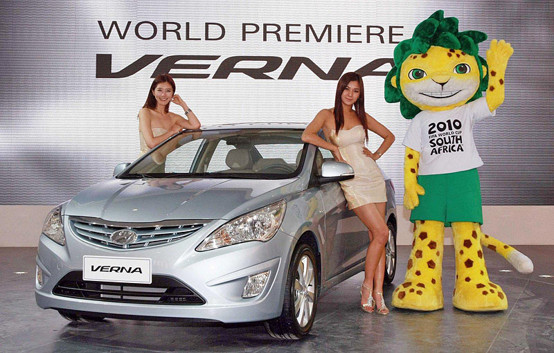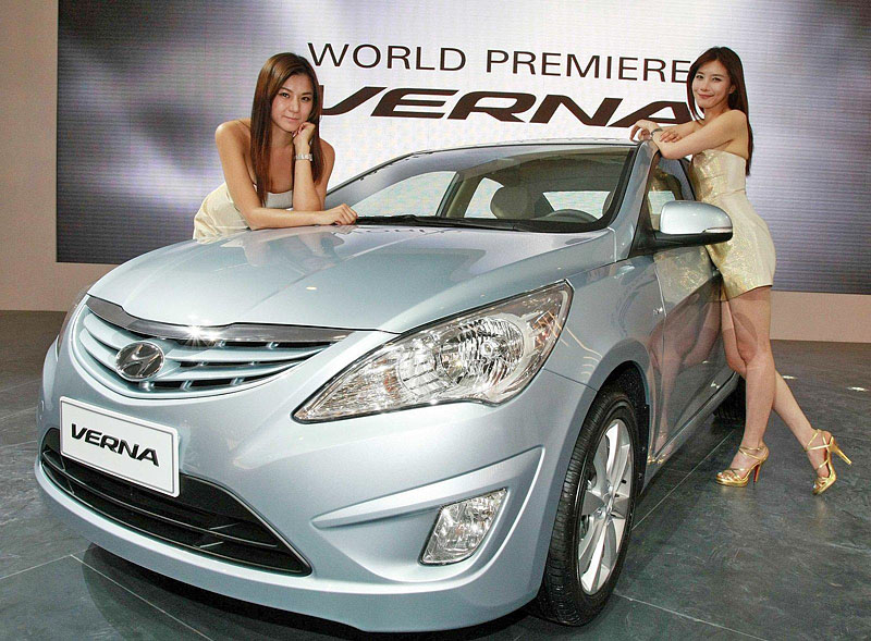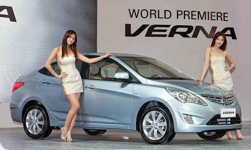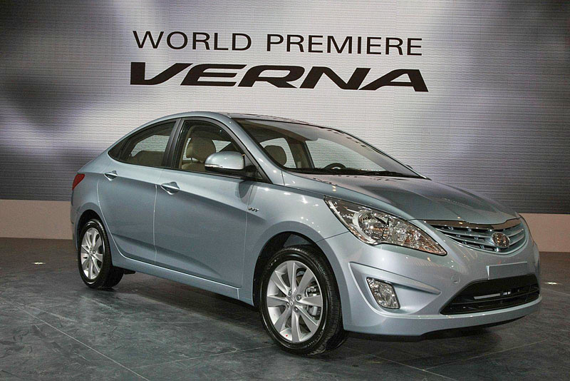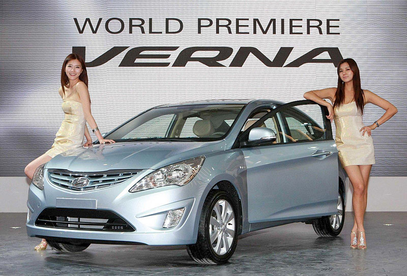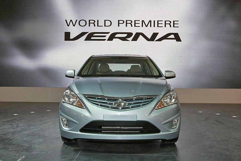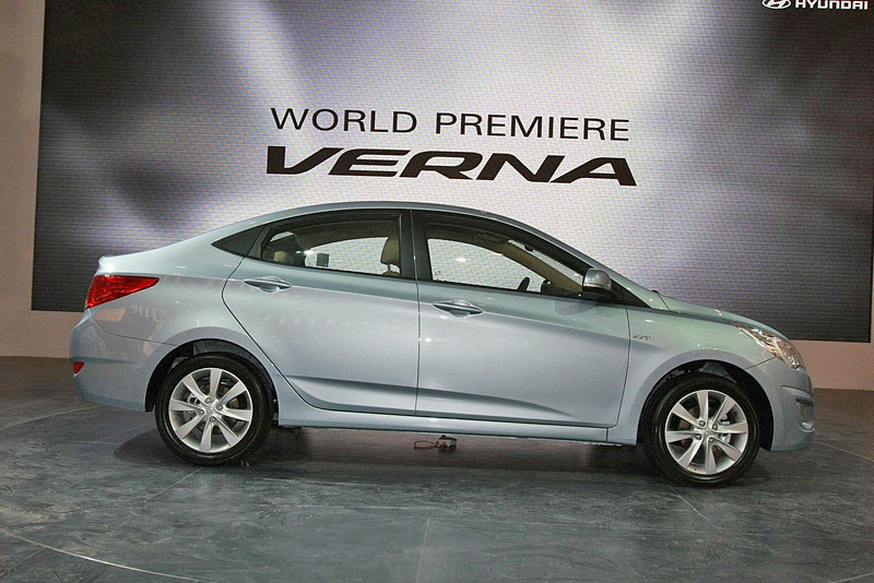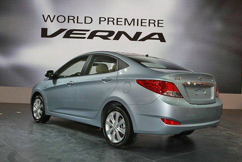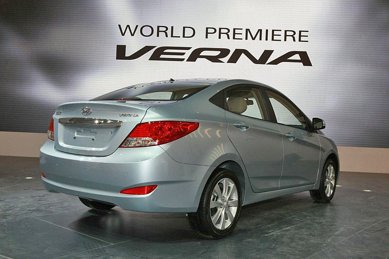 Внешне автомобиль очень напоминает «старшую» модель - Hyundai Sonata последнего поколения. Новинка, которая на многих рынках будет продаваться под названием Verna, точно также получила стреловидные фары головного света, рельефную радиаторную решетку и зеркала заднего вида со встроенными светодиодными повторителями.