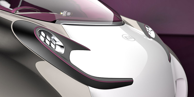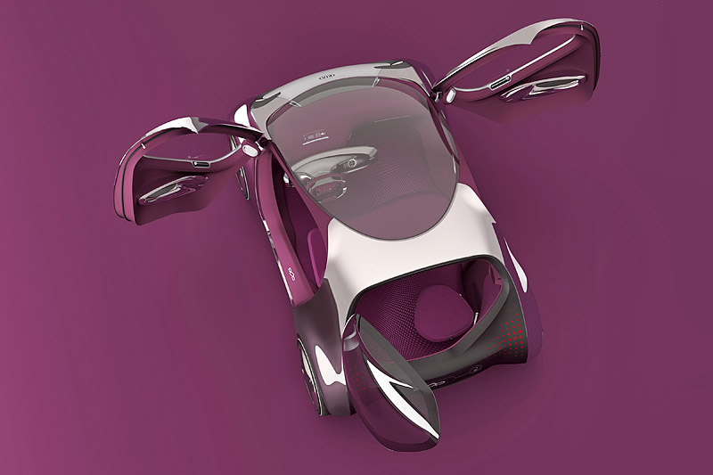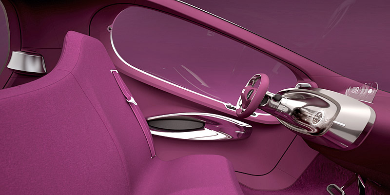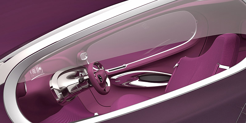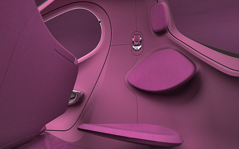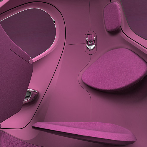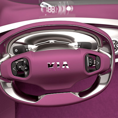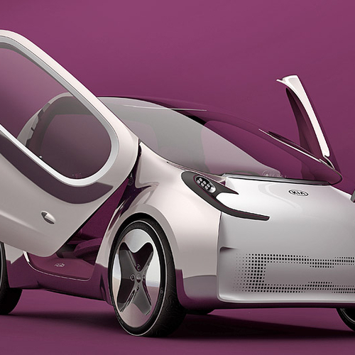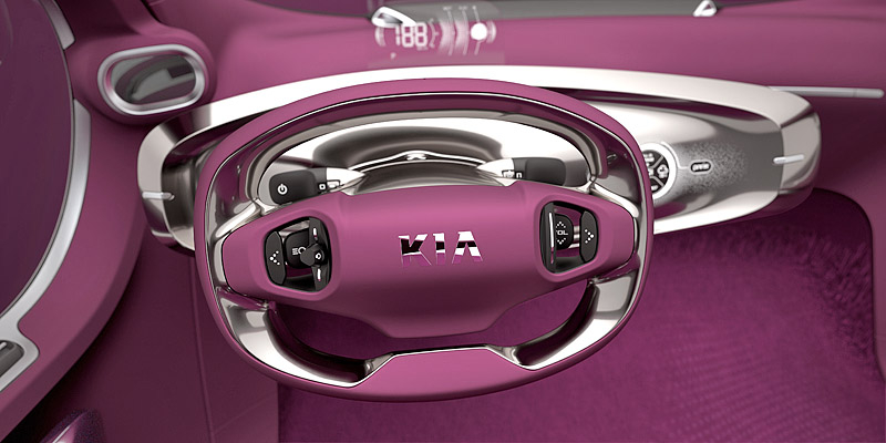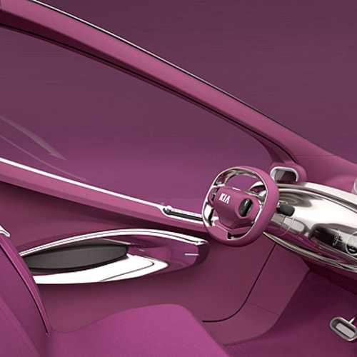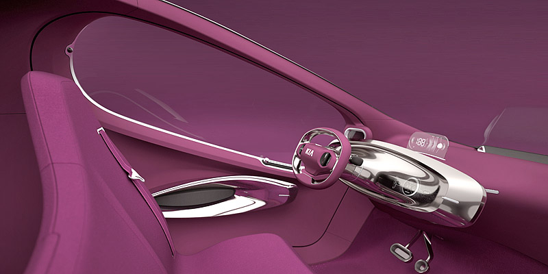 В салоне Kia POP смогут разместиться три пассажира - двое спереди на небольшом "скамейке" и один сзади на откидном "стульчике". Двери концепта открываются вверх, а их верхняя часть немного выступает за пределы крыши. Место привычной приборной панели занял небольшой выдвижной мониторчик, на который выводится большинство информации об авто.