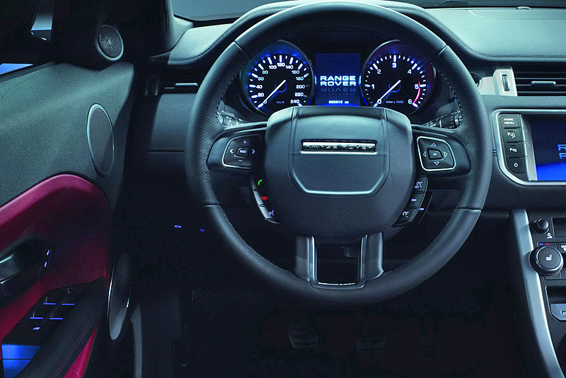 Салон пятидверной версии Evoque особенно отличаться от трехдверки не будет - отделка кожей, солидный цветной сенсорный монитор, с помощью которого можно управлять большинством функций. Кроме того, монитор может использоваться одновременно водителем и передним пассажиром - изображение на экране поддерживает технологию dual-view.