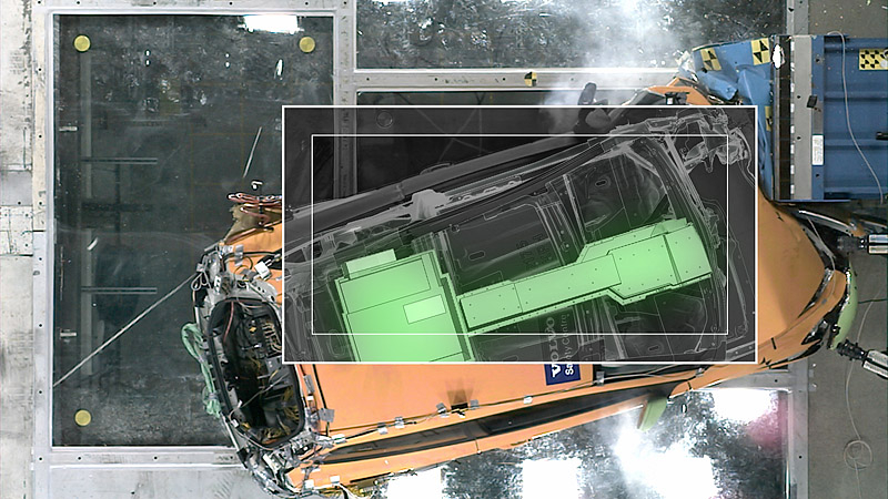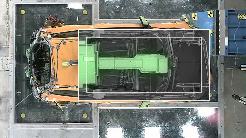 Таким нестандартным шагом шведы хотели продемонстрировать, что электрокары по своей безопасности не уступают обычным автомобилям. В результате фронтального удара на скорости 64 км/ч все элементы электрической силовой утсановки избежали повреждений, то есть в случае аварии не произойдет короткое замыкание, и пассажиры дополнительно не пострадают.