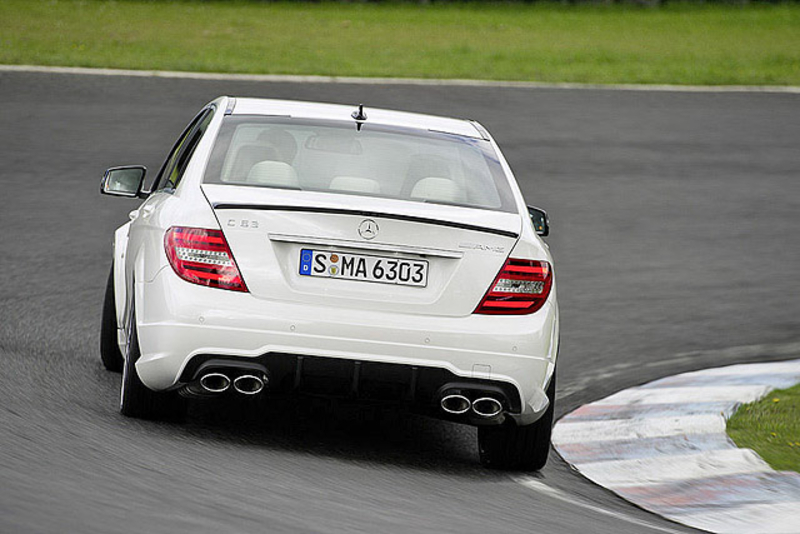 В пакет дополнительного обвеса Mercedes-Benz C63 AMG войдут более крупный передний бампер с "юбкой", задний диффузор, накладки на пороги, сдвоенные патрубки выхлопной системы и небольшой спойлер на крышке багажнике у седана.