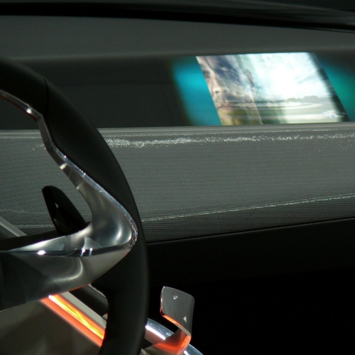 Все ее прелести можно было оценить на большом мониторе рядом с концептом, куда дублировались данные с экранов прототипа. А данных этих может быть очень много, причем, водитель видит их в трехмерном изображении на мониторах, один из которых заменяет стандартную приборную панель.