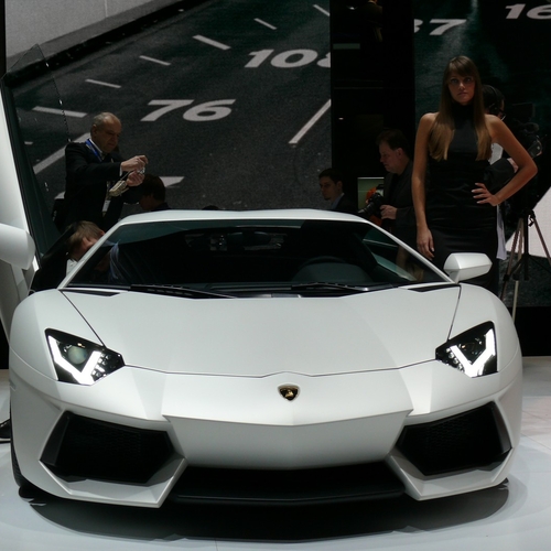 Серийные Lamborghini Aventador LP700-4 выглядели даже предпочтительнее концептов. Итальянцы привезли на Женевский автосалон-2011 сразу три таких суперкара - белого, оранжевого и серого цвета. Чтобы стать владельцем этого автошедевра нужно иметь на счету не меньше ?235 тыс.