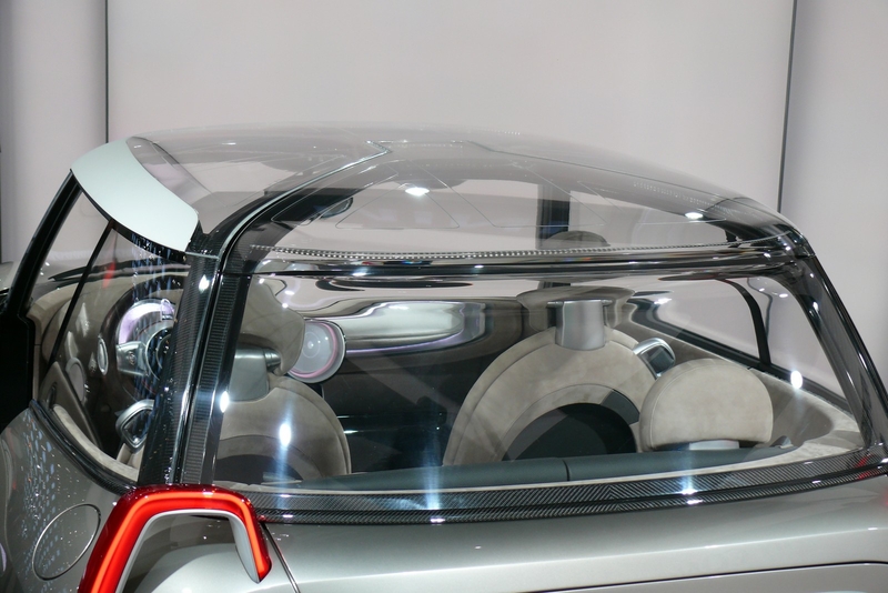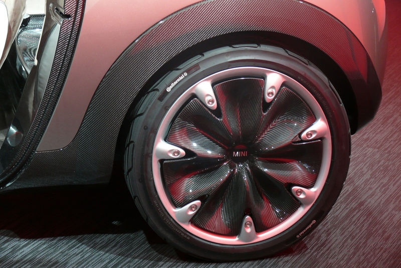 Сам автомобиль внешне не спутаешь ни с какой другой маркой - фирменный Mini. Даже патриотичный Union Jack присутствует на крыше. Кузов машины сделан с использованием карбона, чтобы максимально снизить массу. Из карбона сделаны и оригинальные раскладные двери.