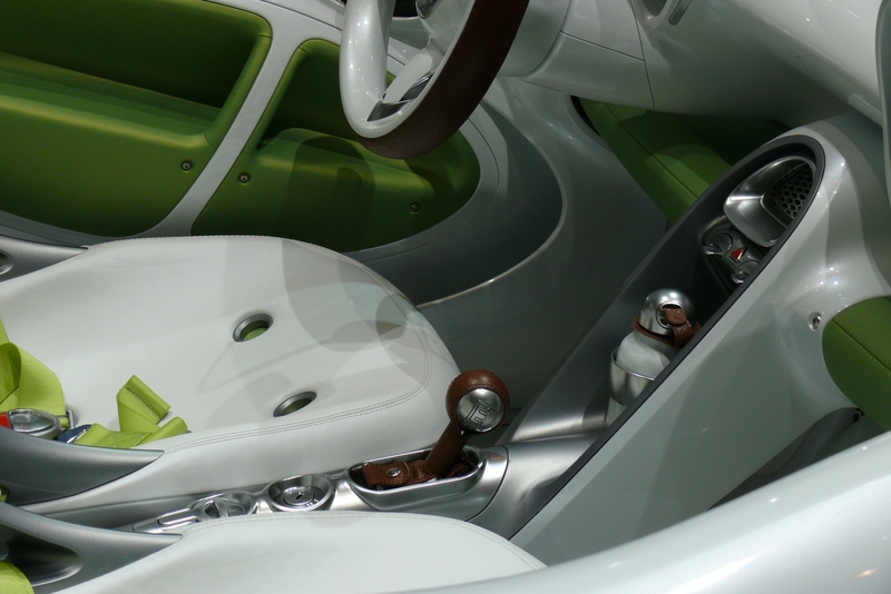 В салоне Smart Forspeed - изящный ретро-минимализм. Для водителя и пассажира предусмотрены отдельные приборные "колодцы", причем в пассажирский можно подключить смартфон и развернуть на 90 градусов в сторону водителя.