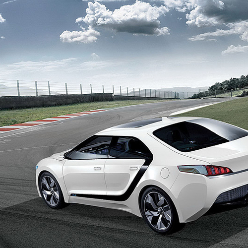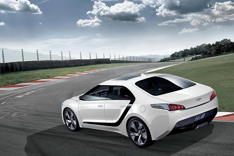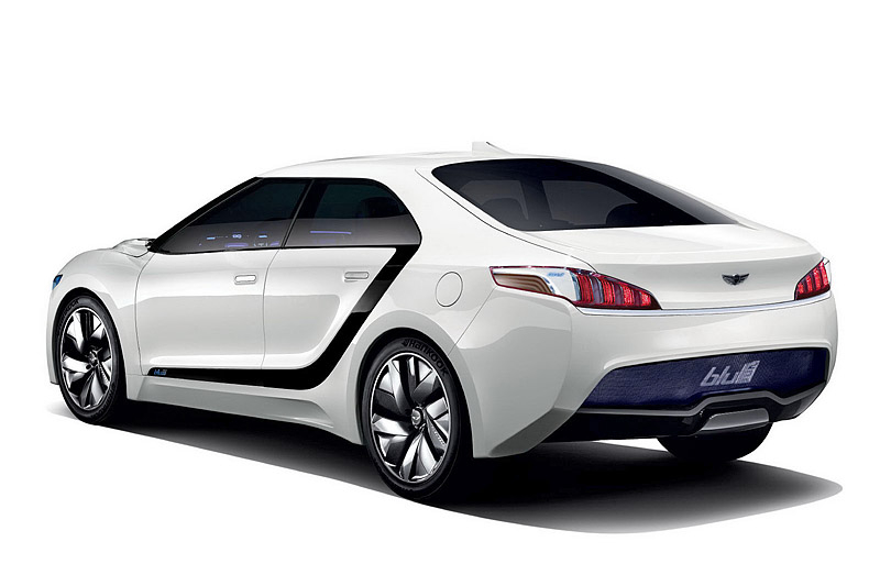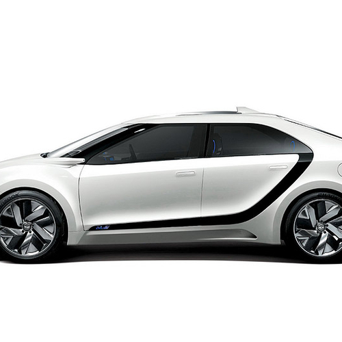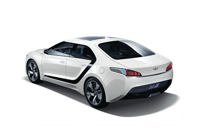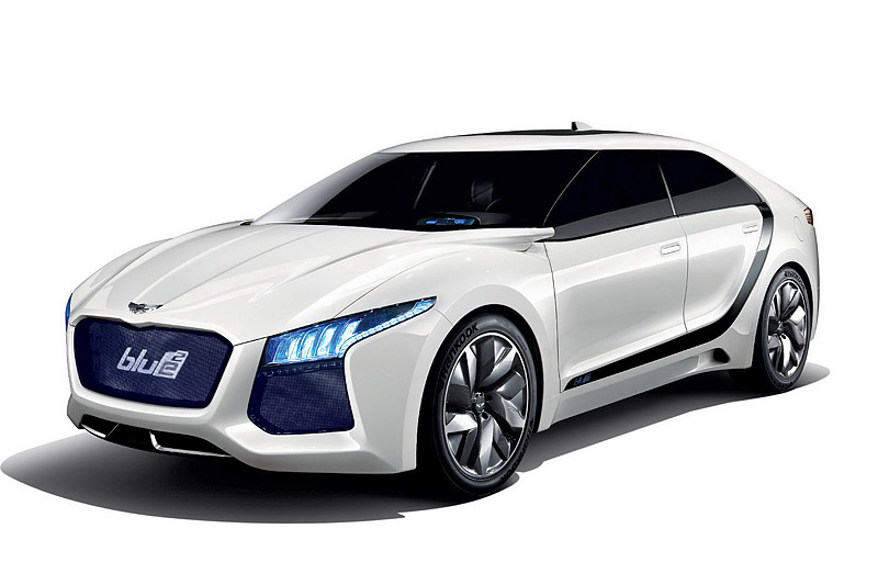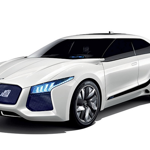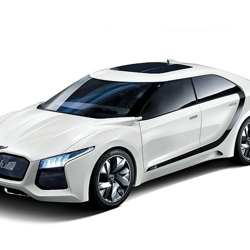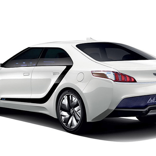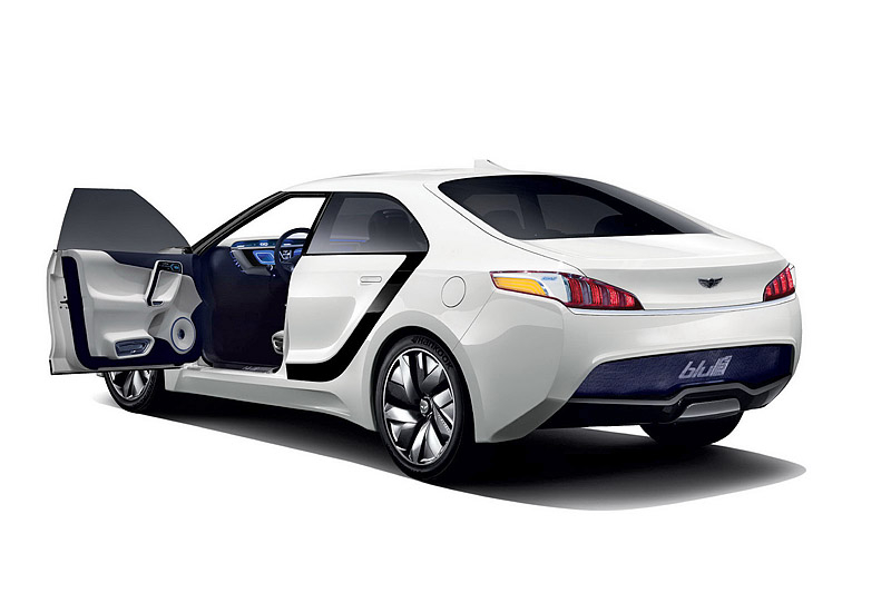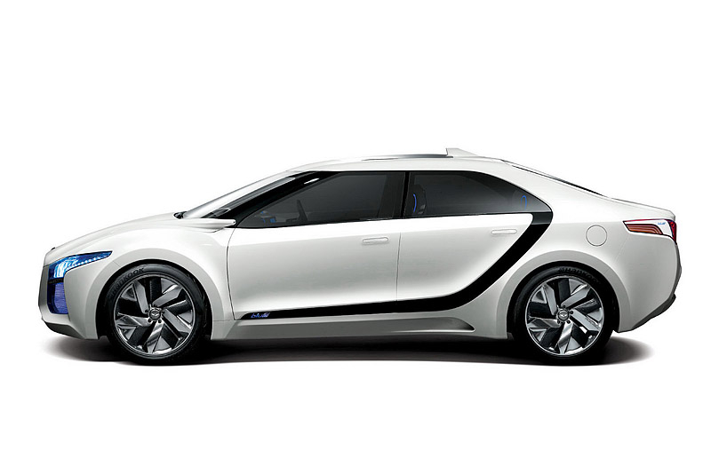 В этом году в Сеуле компания Hyundai представила водородный концепт под названием Blue2. Автомобиль представляет собой седан с необычно расположенными на боковинах полосками темного цвета, пересекающими авто от задней стойки до переднего крыла.