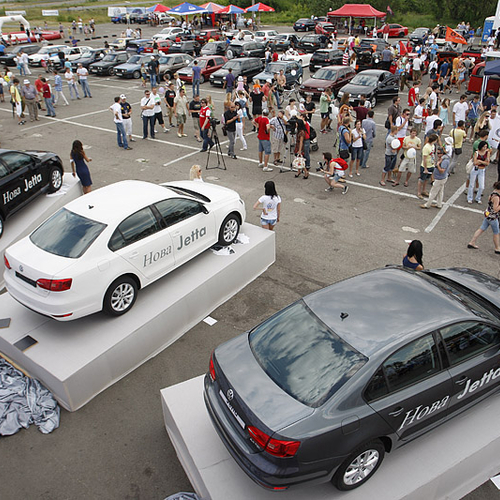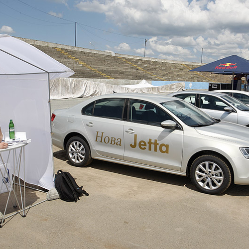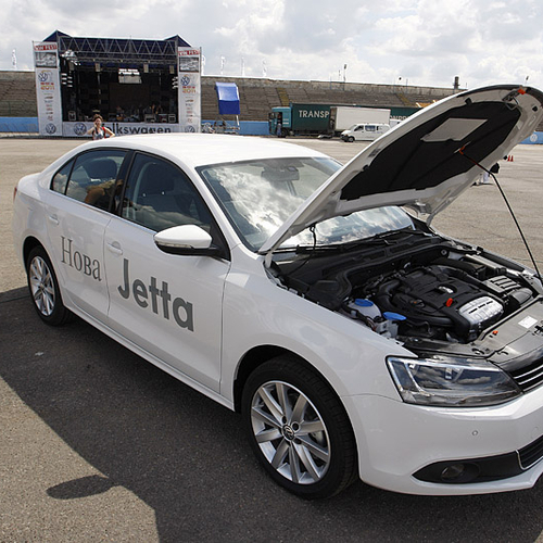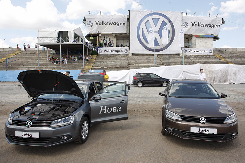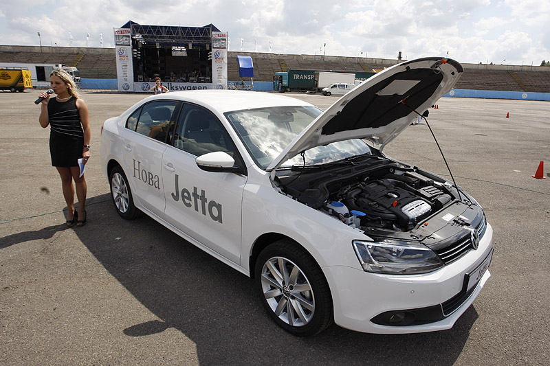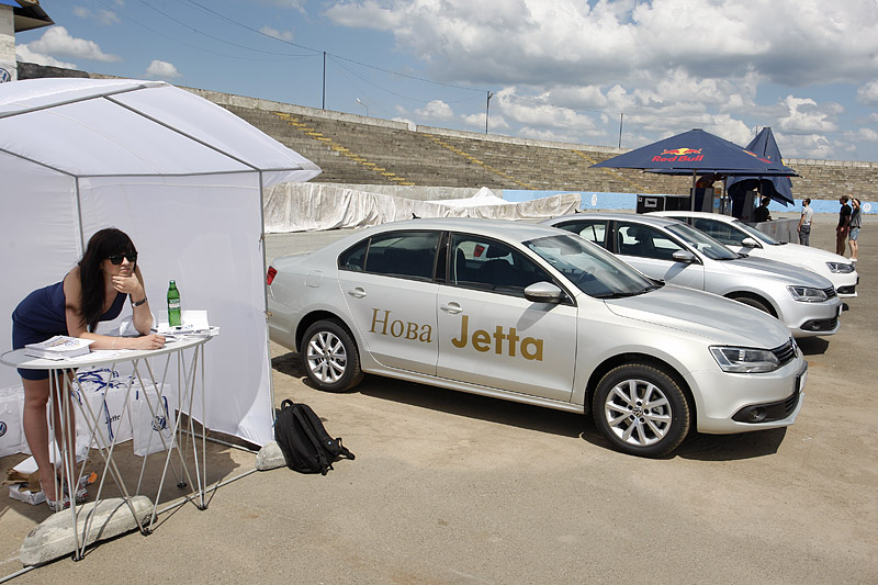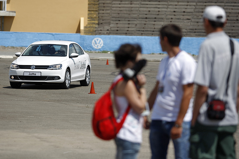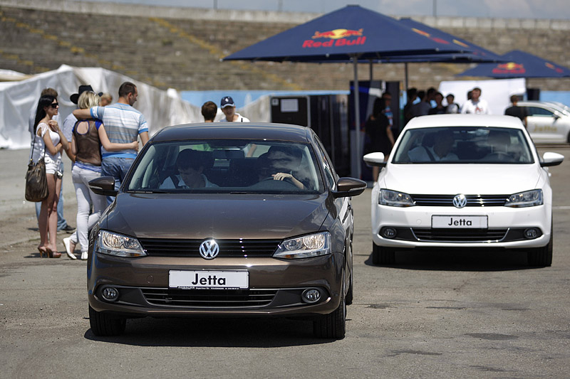 Новая Jetta была тепло и с интересом встречена поклонниками марки, а журналистам удалось не только посидеть за рулем новинки, но и вволю покататься по тестовому маршруту толково организованному на площадке мототрека.