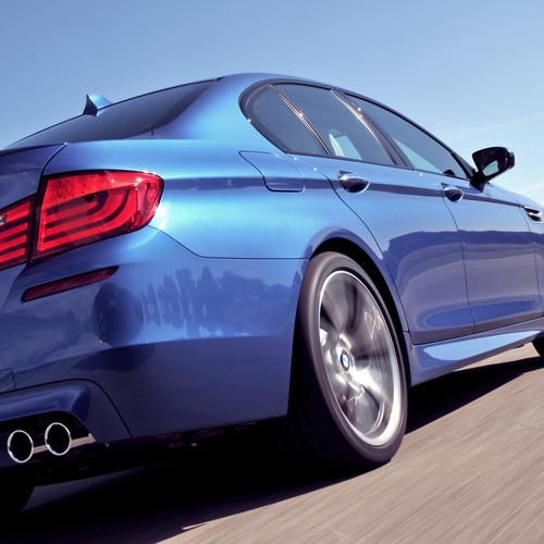 На официальных фото новый BMW M5 представлен в фирменном синем цвете. Внешне от новой "пятерки" заряженную версию можно будет практически безошибочно определить по новым бамперам, воздуховодам в передних крыльях и мощным колесным дискам.