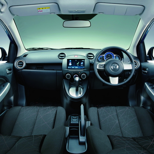Умерить аппетит Mazda2 удалось за счет системы непосредственного впрыска топлива, рекордной компрессии 14.0:1 и фирменной системе Старт/Стоп, которая в Mazda называется i-stop. В базовое оснащение Mazda2, среди прочего, войдут система стабилизации движения с трекш-контролем и 14-дюймовые легкосплавные диски.