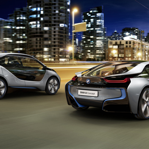 Спорткар BMW i8 оснащен гибридной установкой, включающей наддувный трехцилиндровый бензиновый двигатель. Автомобиль разгоняется с места до 100 км/ч менее чем за 5 сек. и расходует при этом менее 3 л топлива на 100 км.