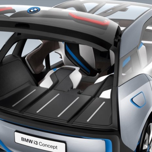 BMW i3 оснащен электродвигателем мощностью 125 кВт и задним приводом. Запас хода автомобиля составляет 150 км. BMW i3 разгоняется с места до 100 км/ч менее чем за 8 сек.