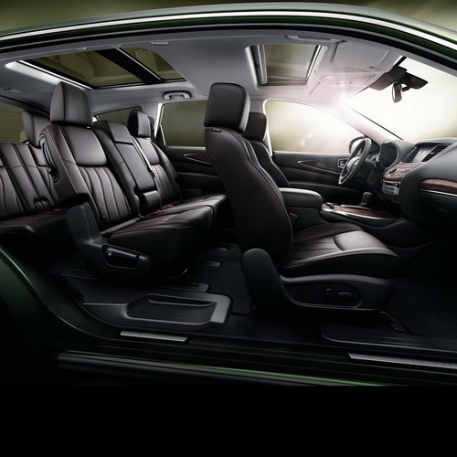 Infiniti JX стал самым просторным в своем классе. Второй ряд сидений сдвигается, что облегчает доступ к дополнительным сидениям. Но, даже сдвигая второй ряд, на нем можно будет оставить детское автокресло, которое не будет мешать.