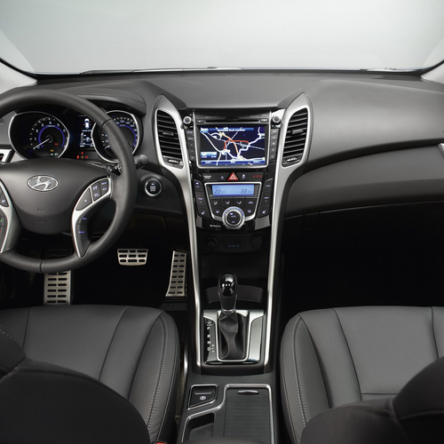 Интерьер схож с концептом Veloster. Так, приборная панель получила глубоко посаженные датчики и выразительную центральную консоль с множеством кнопок, что характерно для машин более дорогого класса.