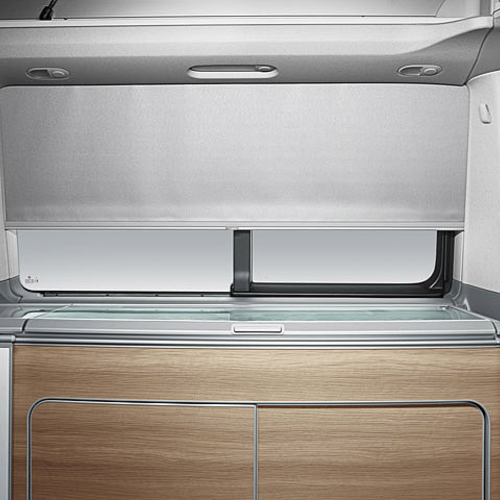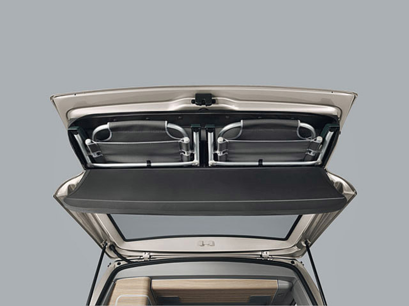 Новинка оснащена двумя удобными креслами спереди, и трехместным диваном во втором ряду, который можно заменить на пару кресел. Переднее пассажирское сидение можно развернуть в сторону салона. Также там есть раскладной столик.