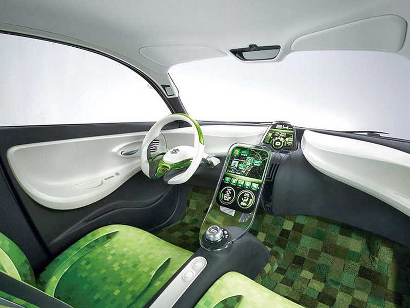 С такой массой машины и весом 4 пассажиров должен будет справляться турбомотор объемом 0,8 литра. В паре с ним будет трудиться бесступенчатый вариатор. Благодаря небольшому объему мотора и системе Старт/Стоп миникар будет выбрасывать в атмосферу 70 г углекислоты на 1 км.