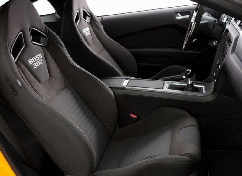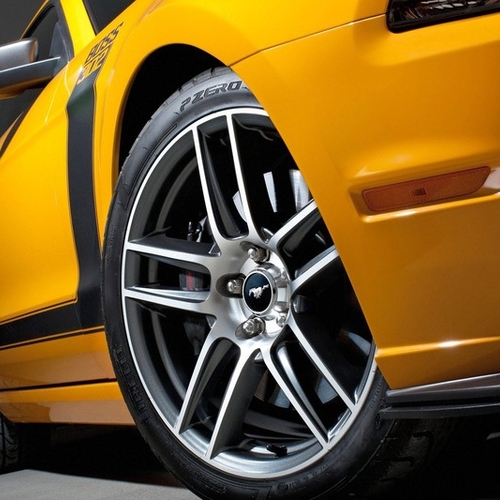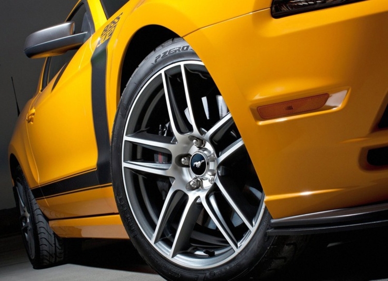 Под капотом Ford Mustang Boss 302 5-литровый двигатель мощностью 444 л.с. На автомобиле заметны новые обвесы, легкосплавные диски, а также новые цвета кузова.