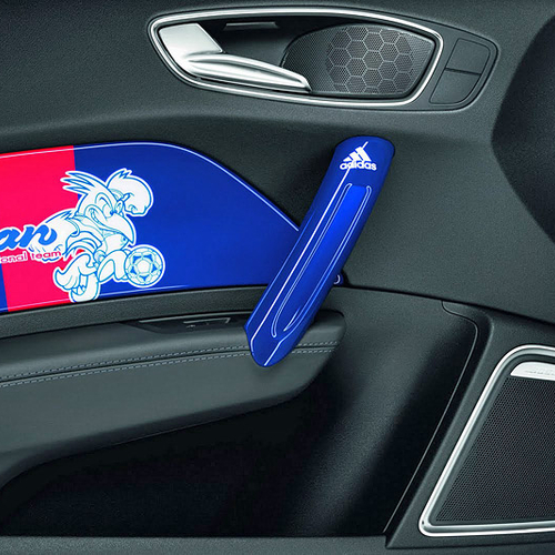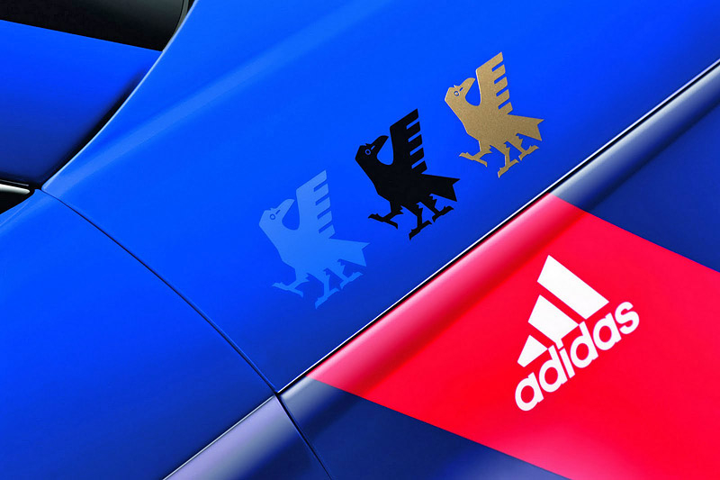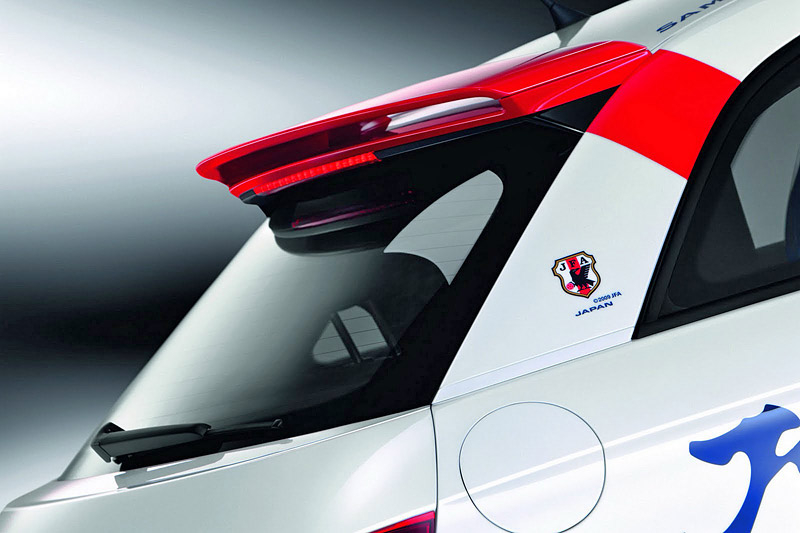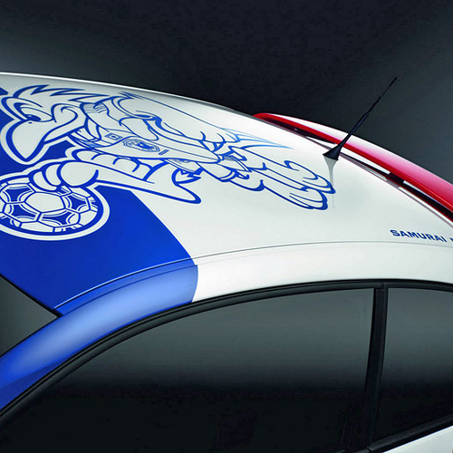 Внешне машину легко узнать по трехцветному окрасу: синий и белый - традиционные цвета сборной, а красный позаимствовали с национального флага. Место стандартных дисков заняли 18-дюймовые колеса ярко красного окраса.