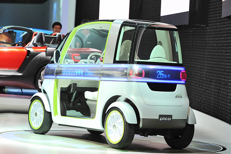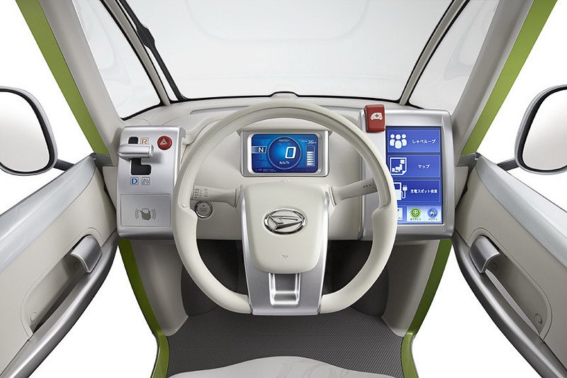 Двухместный концепт Daihatsu PICO весит всего 400 кг. Водитель и пассажир сидят в машине по-мотоциклетному, а заходят в салон через дверные проемы, закрытые защитными дугами, открывающими по принципу ножниц.