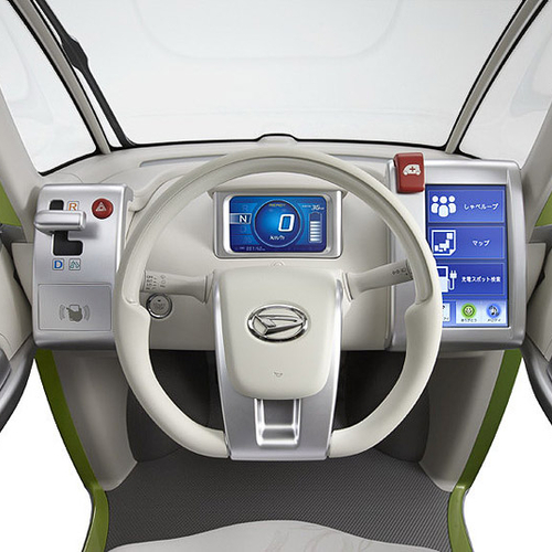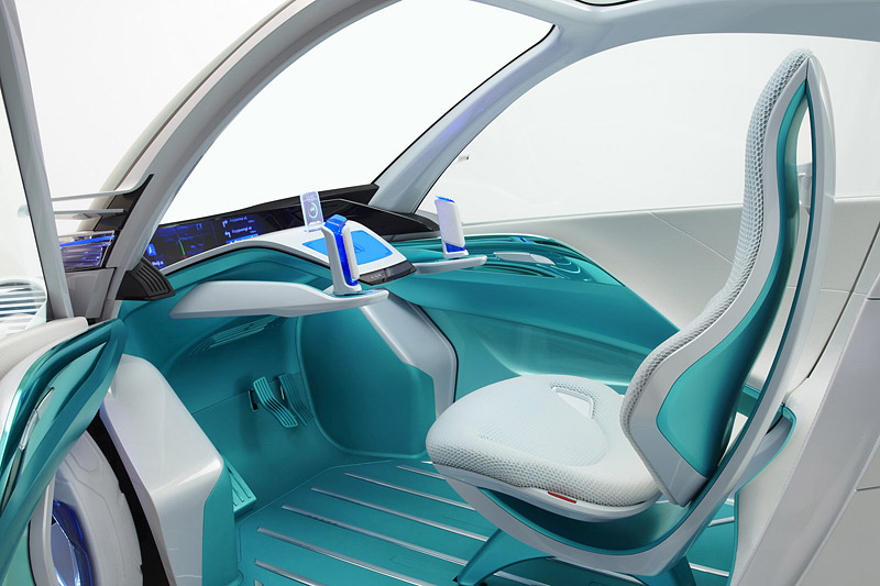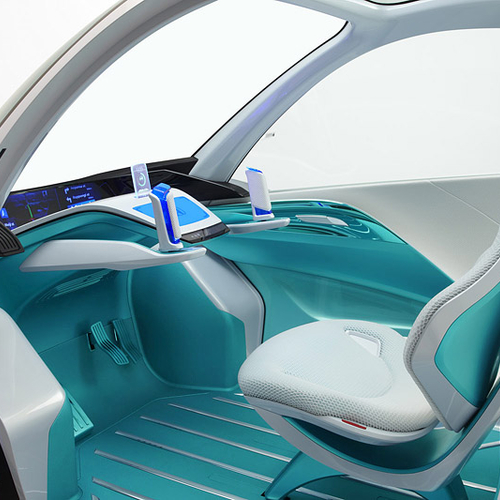 Внешность Honda Micro Commuter можно менять индивидуально, просто заменив внешние панели с яркой графикой. В салоне миникара место стандартного руля занял штурвал. Кроме того, водитель может подключить к авто свой смартфон, информация с которого выводится на проекционный дисплей.