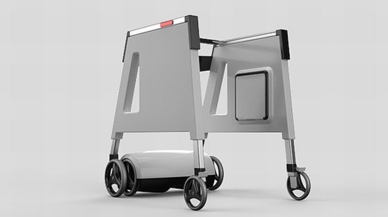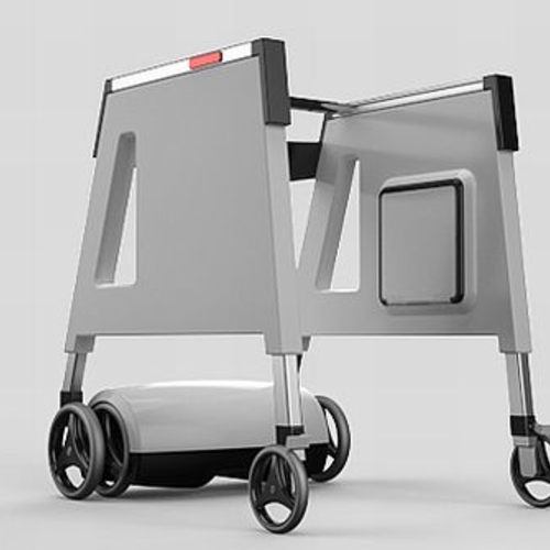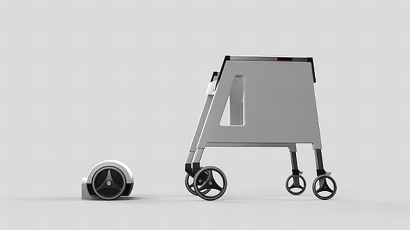 Если требуется небольшая поддержка, или нужно восстановить форму - электромотор легко отсоединяется, и аппарат превращается в обычные ходунки. Дизайнер Андре Ммонтейро предусмотрел на конструкции специальные крючки для сумок и пакетов из супермаркета.