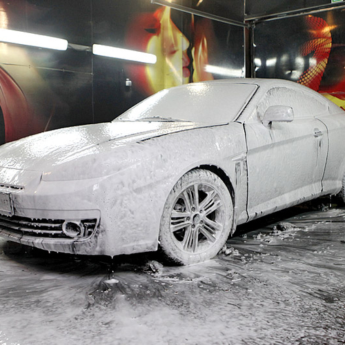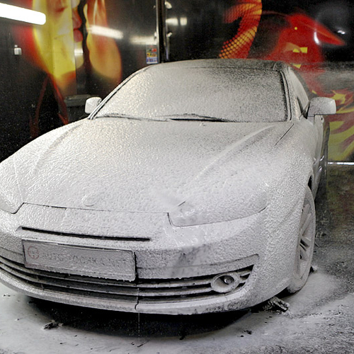 За самим шоу лучше наблюдать из специально оборудованной VIP-кабинки, ведь стекла автомобиля будут забрызганы мыльной пеной, с которой "опытные мойщицы" обращаются очень эффектно.