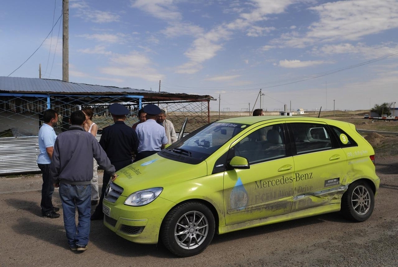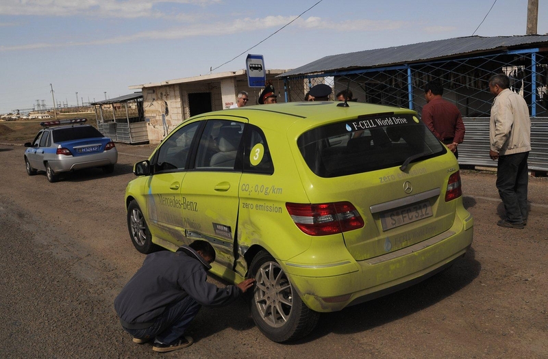 Экологически чистый Mercedes-Benz B-class F-Cell, участвующий в глобальном пробеге F-Cell World Drive, попал в аварию в Казахстане. В результате ДТП, к счастью, никто не пострадал, но сам автомобиль пока не сможет продолжить кругосветный вояж.