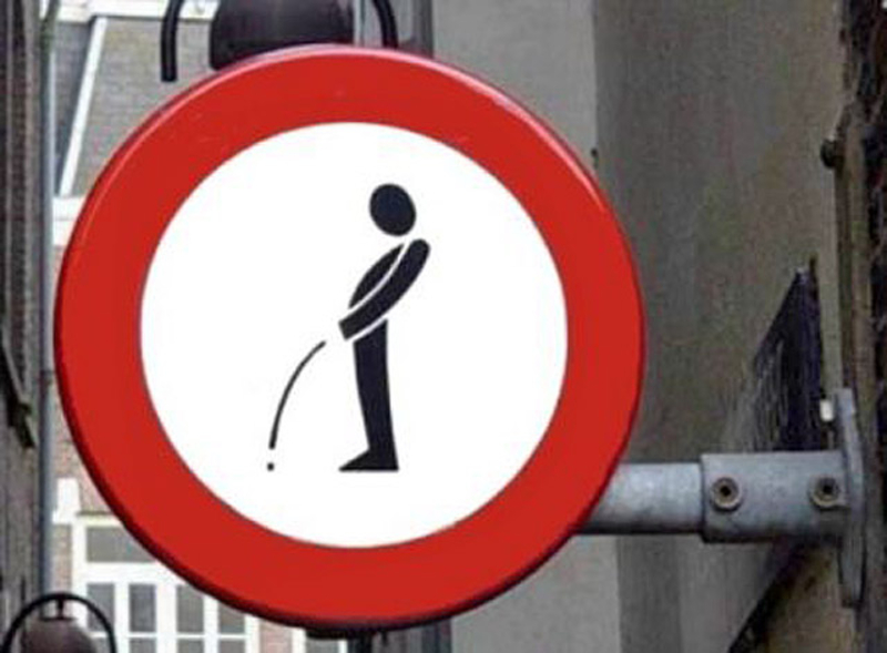 Так, в Нидерландах запрещено справлять нужду на улице, о чем гласит соответствующий знак. Но голландская полиция и подумать не могла, что наши туристы примут этот знак как обратное руководство к действию, и все же "отметятся" прямо под знаком.