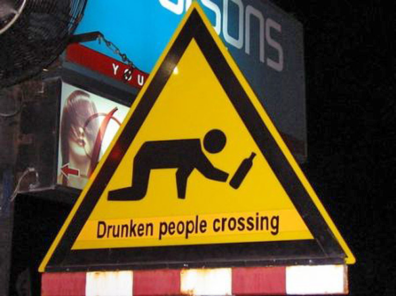 Возле баров и прочих питейных заведений актуально ставить этот знак. Как видим, находчивые американцы так и поступили. Есть аналогичный знак и в Румынии.