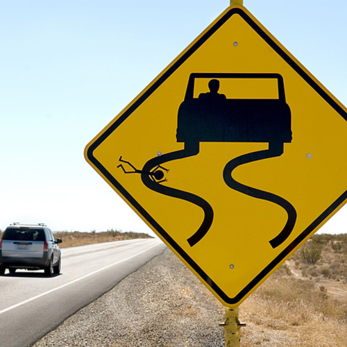 Не менее оригинальный указатель есть в одном из американских городов. Скорее всего, это аналог нашего знака "Крутой спуск", вот только выглядит он очень креативно и красноречиво.