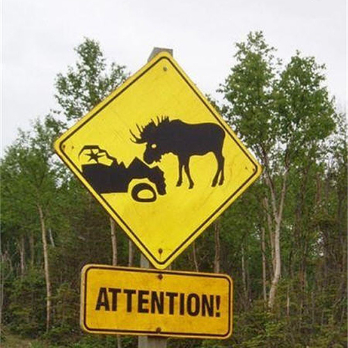 Данный дорожный знак информирует об опасности, которую может нести столкновение с лосем. Кстати, в Европе это довольно популярный знак, из-за того, что лоси и другие животные часто выходят на дорогу. Некоторые компании даже разрабатывают специальные системы, которые позволят избежать столкновения со зверями.