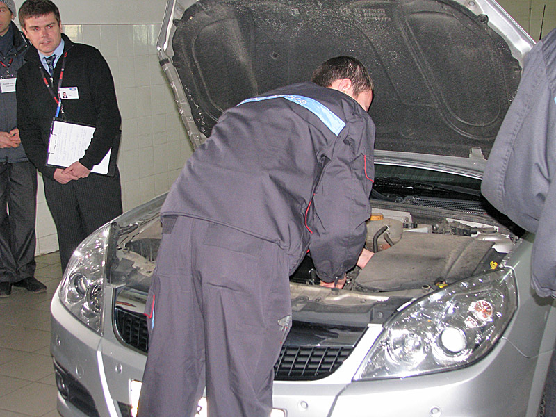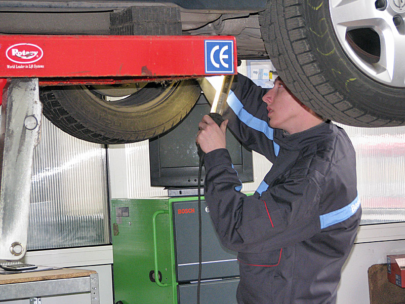 На фирменной СТО под брендом Bosch процедура диагностики проходит по немецким стандартам, здесь же берутся устранить выявленные дефекты. Но сама диагностика стоит 150 грн., а соответствуют немецким стандартам далеко не все автомобили. Например, на одном из постов проверяют светопропускную способность стекол. Причем не только боковых, но и лобового! Малейшие отклонения (например, лобовое стекло затерто щетками стеклоочистителя), и машина ТО не пройдет, необходима замена стекла.