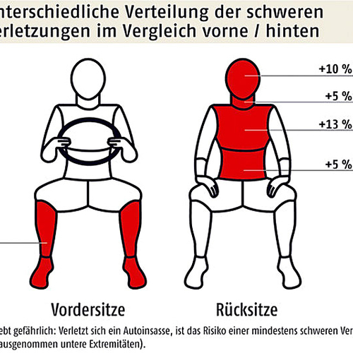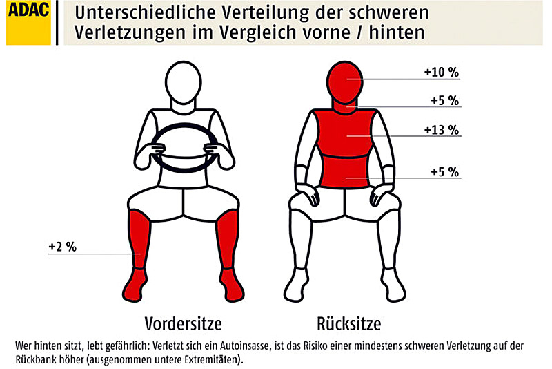 Последние тесты ADAC (Всеобщий немецкий автомобильный клуб), выявили недостаточную защищенность пассажиров второго ряда в легковых автомобилях. Далеко не во всех новых автомобилях для задних пассажиров устанавливаются подушки безопасности и надувные шторки, не говоря уже о таком аксессуаре как четырёхточечные ремни безопасности.