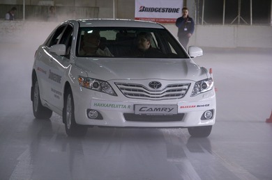 Кроме того, журналистам дали возможность убедится в преимуществах новинки, предложив небольшой тест-драйв на идентичных Toyota Camry. Одна машина была обута в Bridgestone Blizzak Revo GZ, а другая в покрышки лидера прошлого сезона, а теперь основного конкурента.