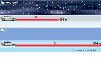 Второй совет - правильно применяйте приемы торможения. Если летом достаточно просто нажать на педаль, то сейчас, на скользкой дороге, просто необходимо помогать этому процессу двигателем, включая пониженные передачи.