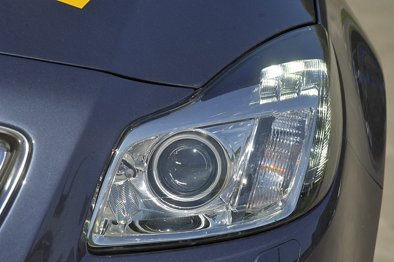 Тем не менее, внушительные размеры без малого пятиметрового автомобиля умело сглажены сложными дизайнерскими изысками и смотрятся весьма гармонично, особенно на опционных 19-дюймовых колесах, таких как на нашей тестовой машине. В презентационном анонсе компании сказано: «Сложный каскадный дизайн передней части Opel Insignia создает неповторимую игру света и тени и подчеркивает динамичность и эмоциональность кузова».
