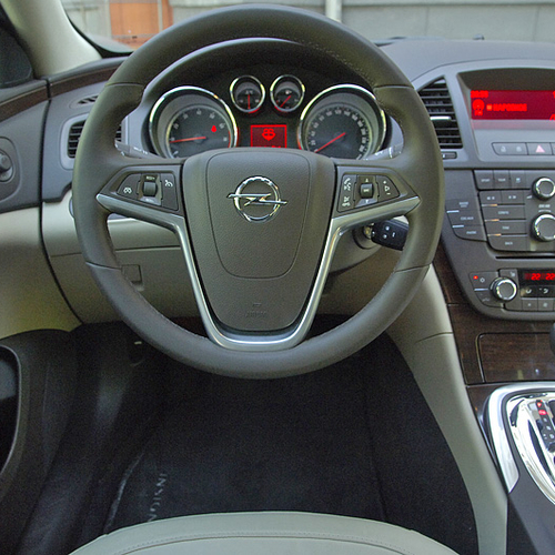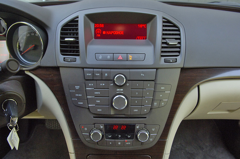 Интерьер Insignia продолжает новый имидж автомобиля среднего класса и поначалу поражает богатством отделки. Правда, присмотревшись внимательнее, замечаешь, что на ощупь материалы все-таки не такие дорогие, как кажется, а стильная отделка ценными породами дерева и вовсе выполнена из пластика. Но общее впечатление добротно собранного дорогого салона остается, и даже пластиковые вставки передней консоли вписываются в интерьер очень органично.