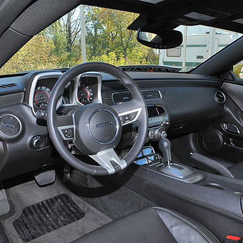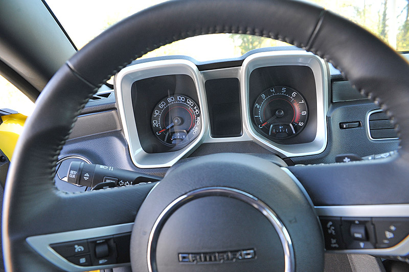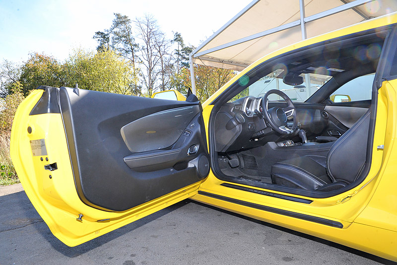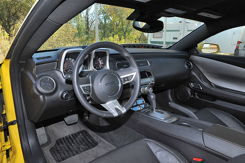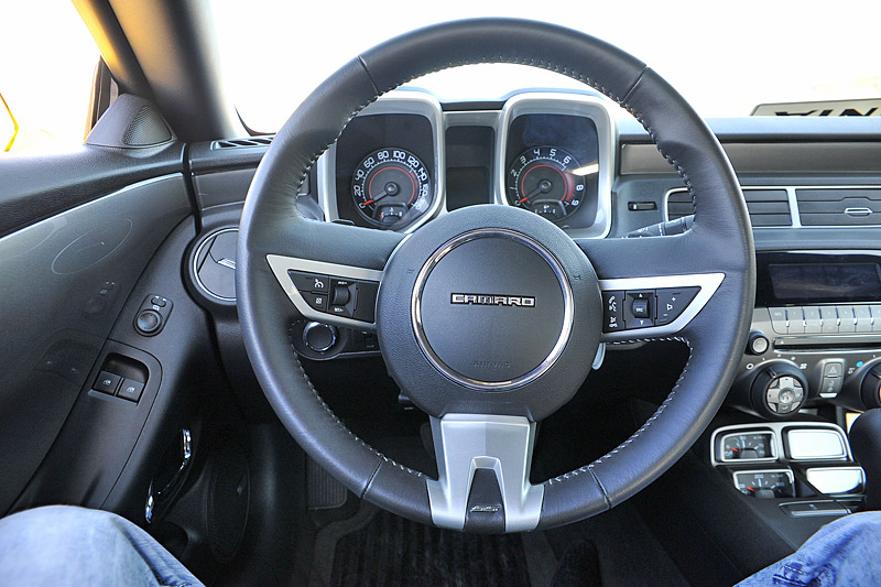 К нам на тест попал самый интересный 8-цилиндровый агрегат. Что характерно, в отличие от европейских машин, на "Камаро" можно полностью отключить систему стабилизации и контроля тяги. И, опять же в отличие от европейцев, система по своему усмотрению не вмешается в процесс управления, даже при длительном скольжении всеми четырьмя колесами.