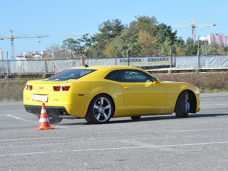 Так что, скоростная рулежка на автодроме в исполнении "Камаро" не впечатляет результатом, зато как эффектно это смотрится со стороны! Полностью отключаемые электронные системы безопасности позволяют бросить машину в управляемый занос и скользить то одним, то другим боком дымя резиной и глухо рыча восьмицилиндровым бензиновым монстром.