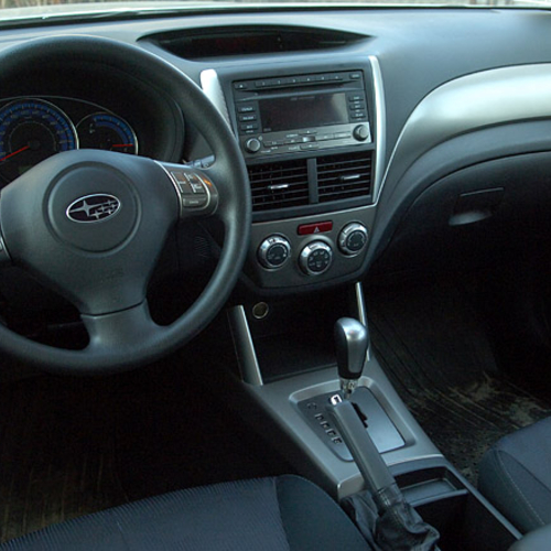 Внутри наш Forester выглядит несколько аскетично. Твердый пластик окружает водителя и пассажиров со всех сторон. Светлые вставки под алюминий смотрятся очень стильно, но богаче салон от этого не становится. CD магнитола на шесть дисков и с семью динамиками удивляет невыразительным звучанием. От японского кроссовера мы ожидали большего.