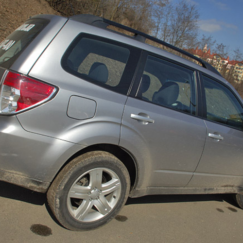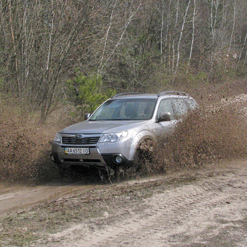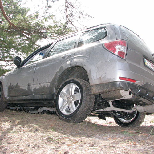 На лесном проселке «лесник» также чувствует себя в своей стихии. Отлично настроенная вискомуфта и система контроля тяги позволяют в любой ситуации распределять крутящий момент двигателя на самые нагруженные колеса. Диагональное вывешивание в Forester практически незаметно, а вот большая задняя дверь в этой ситуации смещается относительно своего замка. Судя по нормальной работе боковых дверей, сам кузов не «играет».