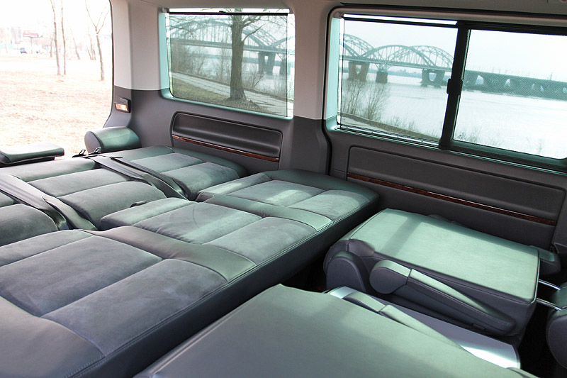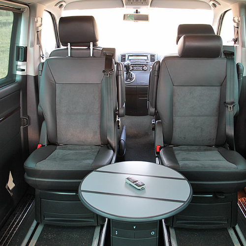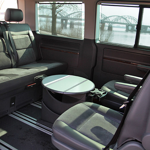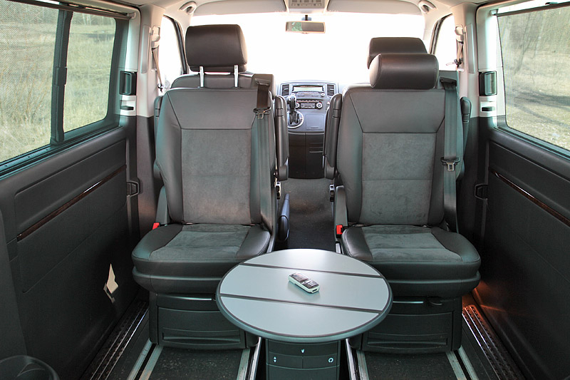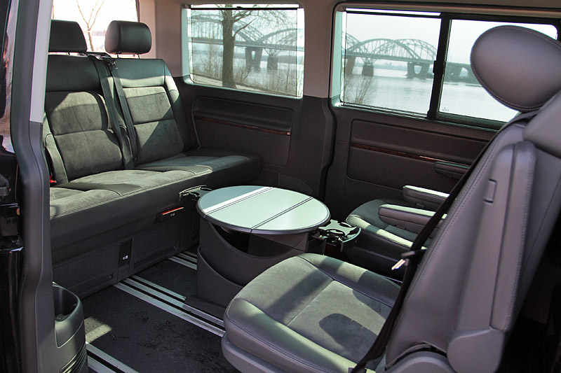 Очень понравились такие непритязательные вроде бы "фишки", как возможность пройти в салон с водительского места или развернуть раздельные кресла пассажирского ряда на 180 градусов. Также большое восхищение у пассажиров вызывает центральный столик-трансформер. Ей-богу, куплю себе такой же в квартиру, если конечно, что-то подобное удастся найти.
