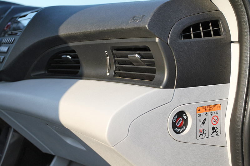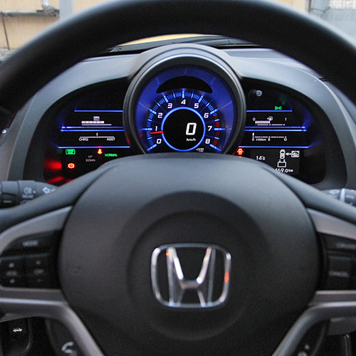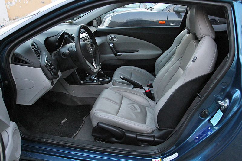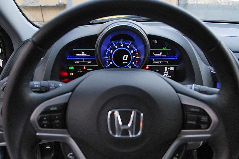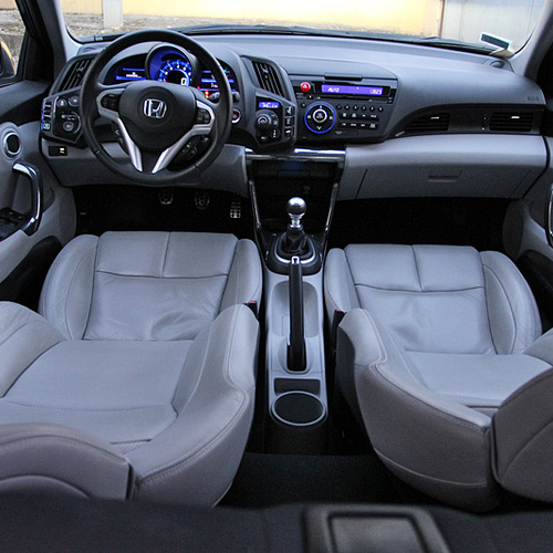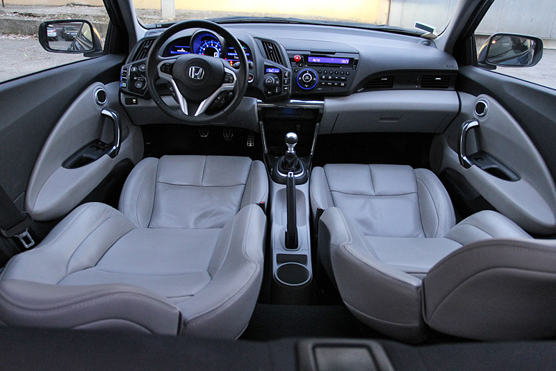 Для поддержания спортивного имиджа посадку в Honda CR-Z сделали довольно низкой. Кожаное сиденье с выраженной боковой поддержкой мягко принимает в свои "объятья", но валики боковой поддержки расставлены достаточно широко. Оживший от прикосновения к кнопке Start щиток приборов позволяет почувствовать себя капитаном небольшого космического аппарата.
