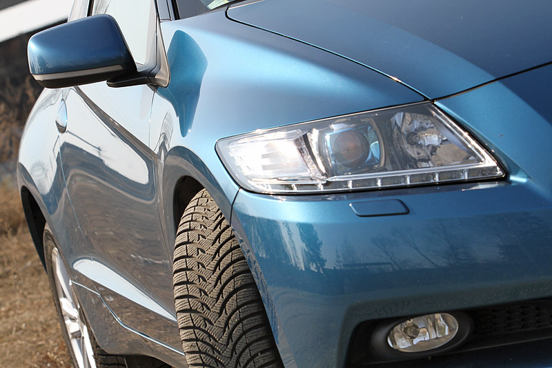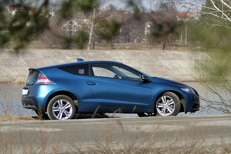 В так любимом автомобильными фотографами ракурсе "три четверти" CR-Z смотрится наиболее выигрышно. Но присущей спорткарам агрессии и стремительности в его облике нет. Плавные обводы кузова скорее подчеркивают выверенную аэродинамику этого купе.