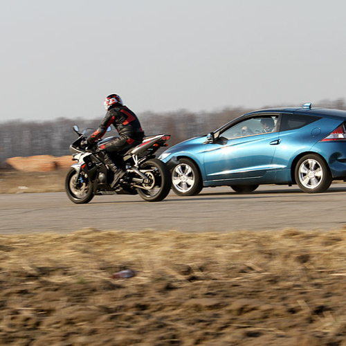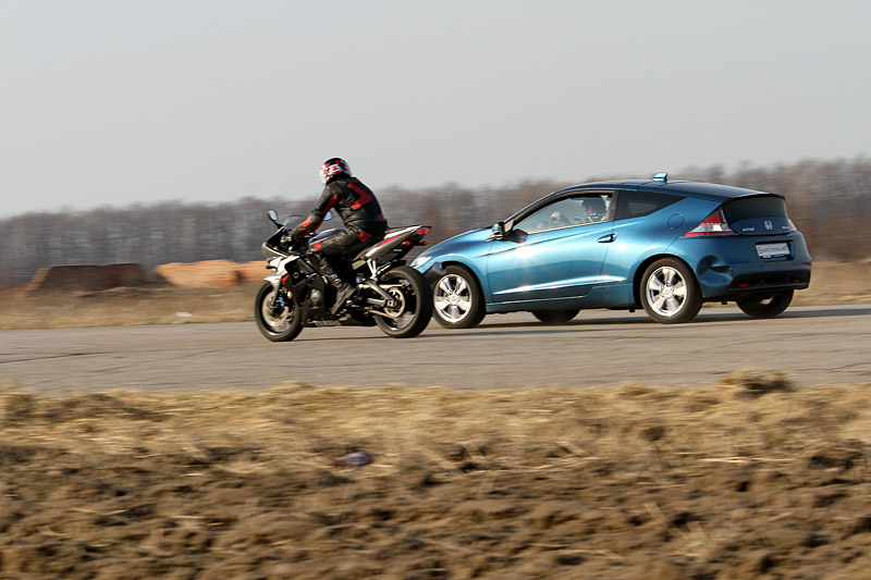 Впрочем, с "R6" сложно тягаться даже Porsche 911. Зато по усредненному показателю расходуемого топлива, конкурентов у Honda CR-Z немного, и по этому показателю она вполне может тягаться даже с мотобайком.