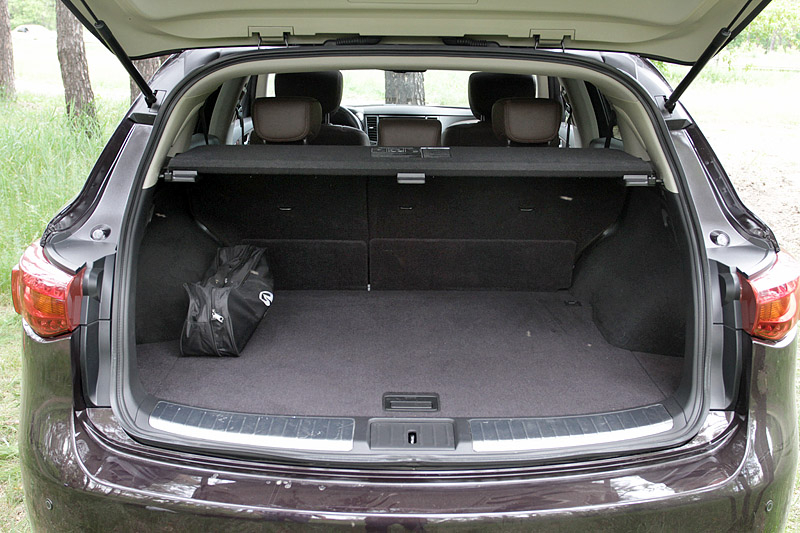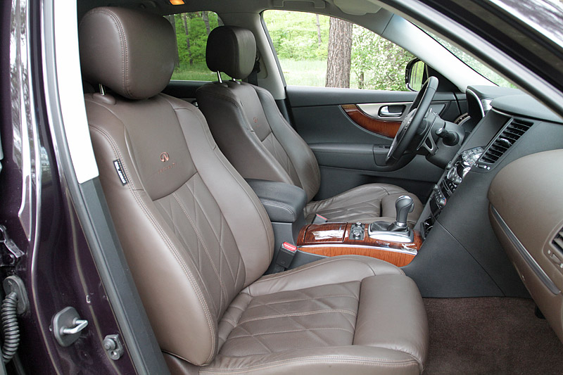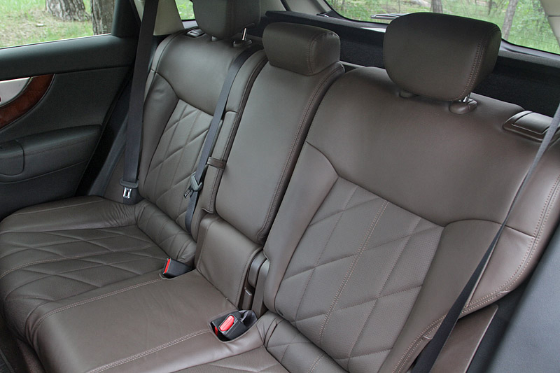 Салон Infiniti FX 37, несмотря на прибавку дополнительных 35 мм в базу, в сравнении с предыдущим поколением "эф-иксов", особенным простором не балует. Особенно это заметно на втором ряду сидений. Пространства над головой в обрез, а высоким лучше сразу отказаться от люка. Тем не менее, экипажу из 4-х человек можно разместиться очень комфортно.