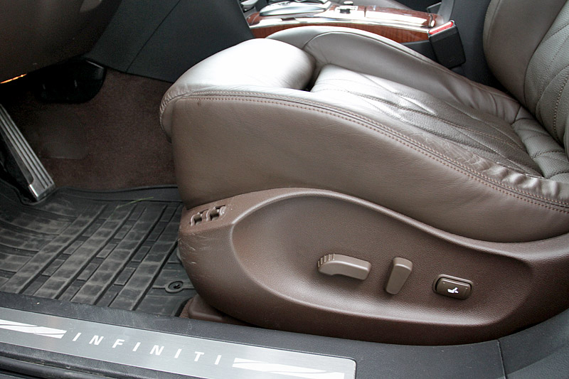 Зато передние кресла (сиденьем это произведение инженерной мысли уже не назовешь) Infiniti FX 37S оснащены самыми разнообразными видами регулировок. Помимо стандартных для такого класса авто сервоприводов по длине, высоте и углу наклона, можно настроить под себя боковую поддержку, поясничный упор, а также менять длину подушки сиденья. А еще передние кресла, кроме подогрева, имеют функцию вентиляции.