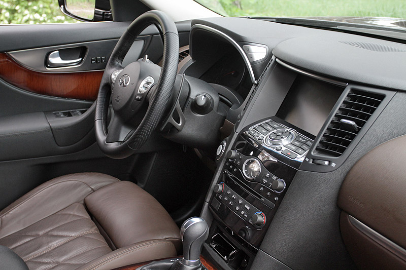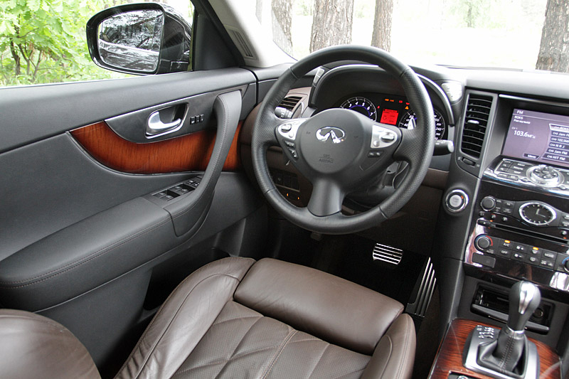 Ну, а главной изюминкой FX, подчеркнутой приставкой S, является система изменяемой жесткости подвески (CDC). Правда, ездить по нашим дорогам лучше в штатном режиме работы амортизаторов, которые и так довольно подробно передают на кузов неровности дорожного покрытия.