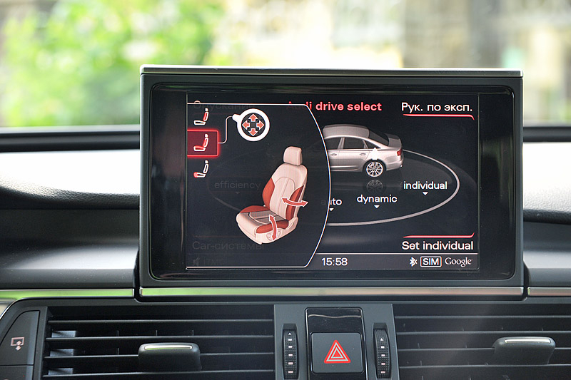 Но если впереди появился открытый участок недавно построенной трассы, смело крутите ручку управления в режим dynamic, а селектор АКПП в "Спорт". Подаренные Audi A6 впечатления в этом режиме непередаваемы. Скромно заметим, что динамика в 5,5 с от ноля до "сотни" нам показалась вполне достаточной для такого авто.