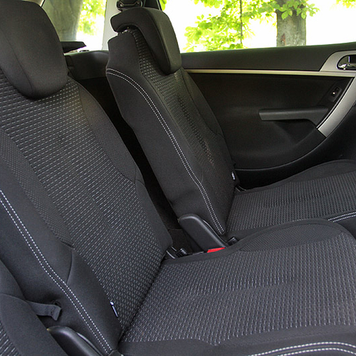 Говорят, что первое впечатление - самое сильное. Для достижения этого эффекта французы не экономили. Передние кресла просто шикарны. Тут и комбинация из трех видов ткани, и выверенный профиль сиденья, и выраженная боковая поддержка, даже откидной столик в спинке предусмотрен!