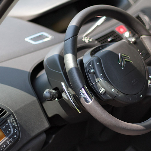 Небольшой рычажок селектора АКП, примостившийся на ступице руля, просто умиляет - чисто французский девайс. Количество режимов работы трансмиссии доведено до минимума: R, N, A (авто) и M (ручной). Нет привычного Р (паркинг), зато глушить мотор можно при любом положении селектора АКП. При этом электронный "ручник" сработает автоматически. А вот завести машину можно только при положении рычага в нейтрали, и обязательно нажав на педаль тормоза.